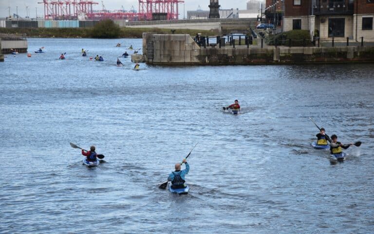 AquaPaddle Liverpool is based in the world-famous Liverpool Docks. Any Craft can be used for AquaPaddles at this venue (weather dependent), including different Kayaks, Canoes, SUPs, etc. The course will take you through the dock system through all of the history that they used to be used for; and the interesting new multi-billion pound developments being constructed in this fast-evolving waterway. The course brings you right the way up to the famous Liver Building in Princess Dock before heading back to the finish point.